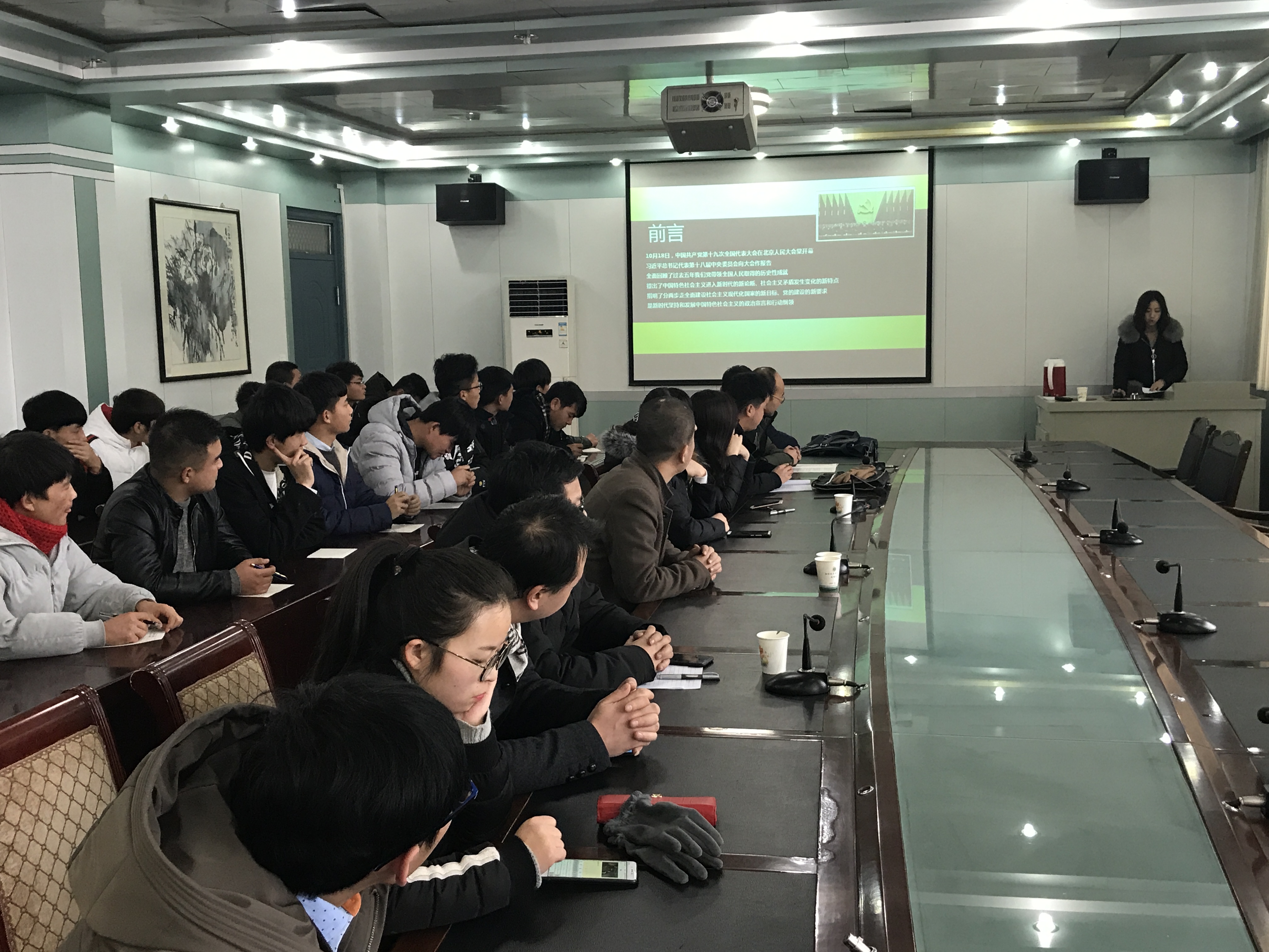 根據(jù)《中共武威職業(yè)學院委員會關于深入學習宣傳貫徹黨的十九大精神的通知》精神,1月4日下午,建筑工程系系邀請思政教研室侯傾老師,在博學樓二樓會議室,為全系黨員、教師、入黨積極分子和團學干部做關于學習貫徹黨的十九大精神宣講。會議由系黨總支書記聶百勝主持。