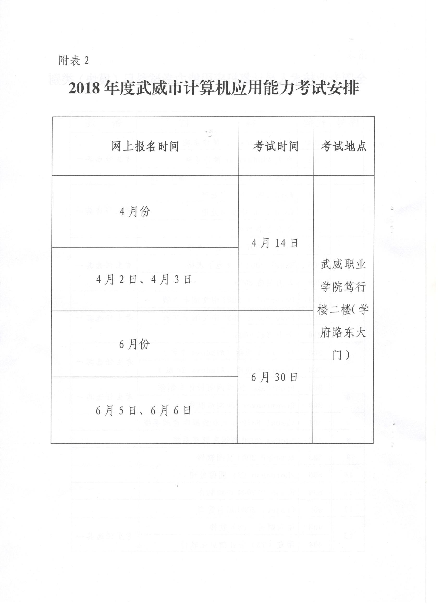 <轉(zhuǎn)>武威市人力資源和社會保障局關(guān)于做好2018年度全市專業(yè)技術(shù)人員計算機應用能力考試工作的通知(武人社發(fā)〔2018〕138號 )