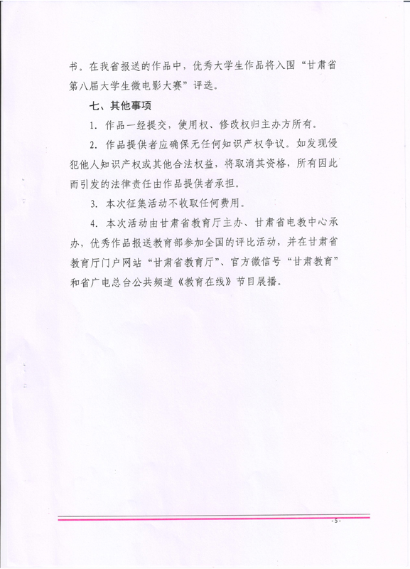 ???? 現(xiàn)將甘肅省教育廳《甘肅省教育廳關于做好征集新時代教師風采公益廣告有關工作的通知》(甘教師函〔2018〕24號)轉(zhuǎn)發(fā)你們,請各部門、單位根據(jù)通知要求認真組織,積極參與。將參賽作品于5月15日前報宣傳統(tǒng)戰(zhàn)部辦公室,宣傳統(tǒng)戰(zhàn)部對報送作品匯總后統(tǒng)一報送省教育廳電教中心。