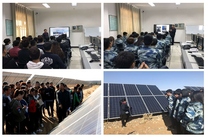 ? ? 作為我省唯一具有大規(guī)模光伏發(fā)電生產(chǎn)性實(shí)訓(xùn)基地的高職院校,學(xué)院能源工程系充分利用校辦企業(yè)優(yōu)勢,走產(chǎn)教融合、協(xié)同發(fā)展之路,突出校企協(xié)同育人,推進(jìn)企業(yè)參與人才培養(yǎng)全過程。2017年,能源工程系將優(yōu)質(zhì)校特色專業(yè)光伏發(fā)電技術(shù)與應(yīng)用的實(shí)踐教學(xué)內(nèi)容安排在泰豐新能源有限公司20MW光伏電站開展。6月份選派兩名專業(yè)教師赴光伏電站進(jìn)行為期兩周的駐企實(shí)踐;7月系部組織全體教師赴電站開展生產(chǎn)性實(shí)踐技能培訓(xùn);10月分別組織2017級(jí)學(xué)生赴光伏電站進(jìn)行認(rèn)知實(shí)習(xí)和2017級(jí)學(xué)生進(jìn)行實(shí)踐教學(xué)活動(dòng);12月選派兩位專業(yè)課教師赴電站進(jìn)行光伏電站相關(guān)課程的微課資源設(shè)計(jì)。通過一系列的教學(xué)活動(dòng)的開展,加強(qiáng)了校企合作產(chǎn)教融合力度,提高了學(xué)生實(shí)踐能力和專業(yè)認(rèn)知,同時(shí)專業(yè)課教師的實(shí)踐教學(xué)能力得到提升。