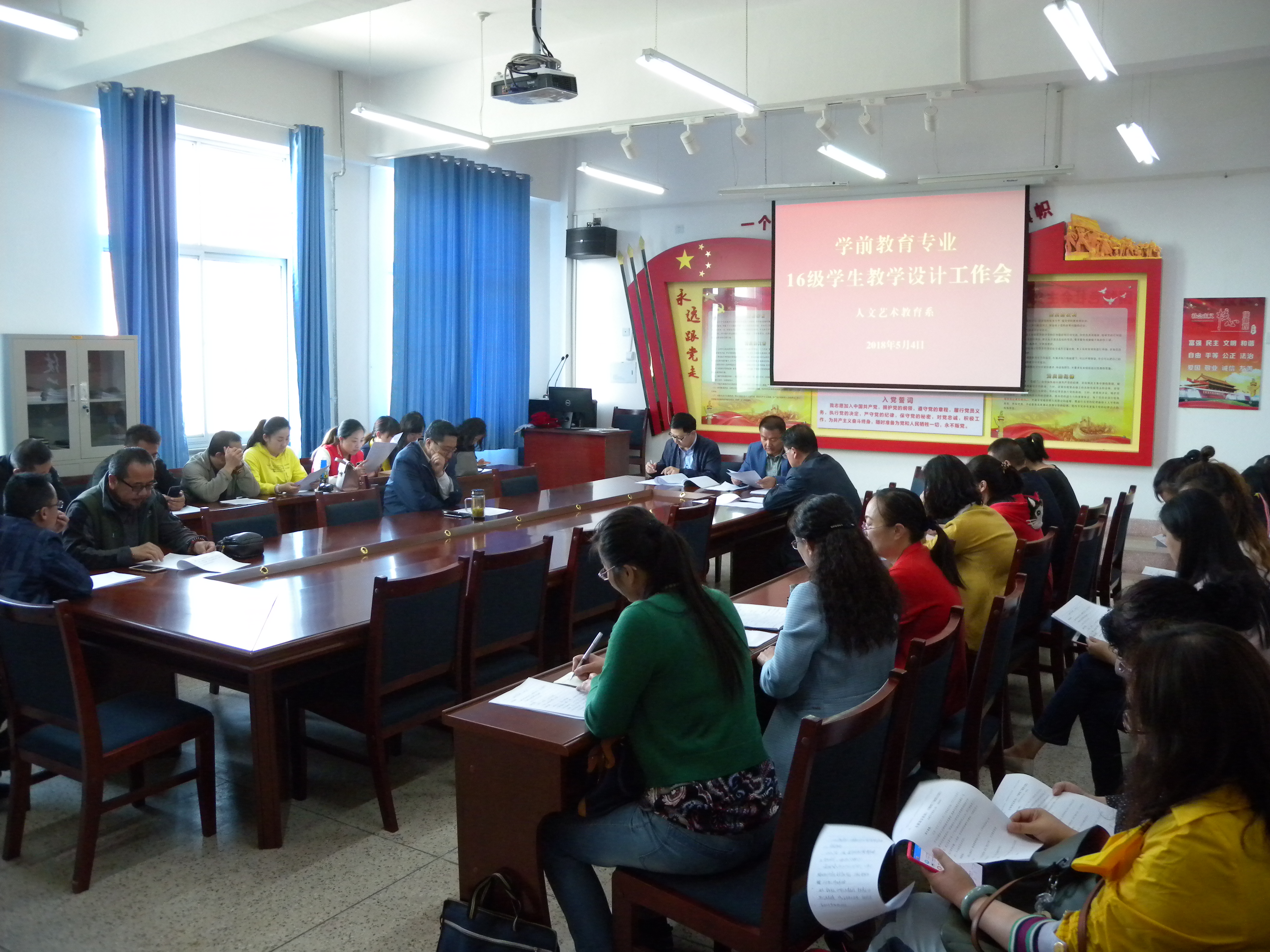 5月4日下午,人文藝術(shù)教育系召開優(yōu)質(zhì)校建設(shè)學(xué)前教育重點(diǎn)專業(yè)2016級學(xué)生教學(xué)設(shè)計(jì)工作專題會(huì)議。全系中級及以上職稱教師和2016級學(xué)前教育大專班班主任參加了會(huì)議。