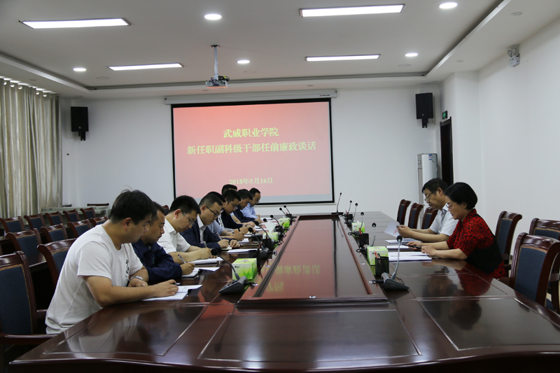 5月16日下午,學院在行樹樓210會議室召開會議,由紀委書記張富國對新任職的10名副科級干部進行任前廉政談話。會議由黨委委員、組織人事處處長何毅主持。