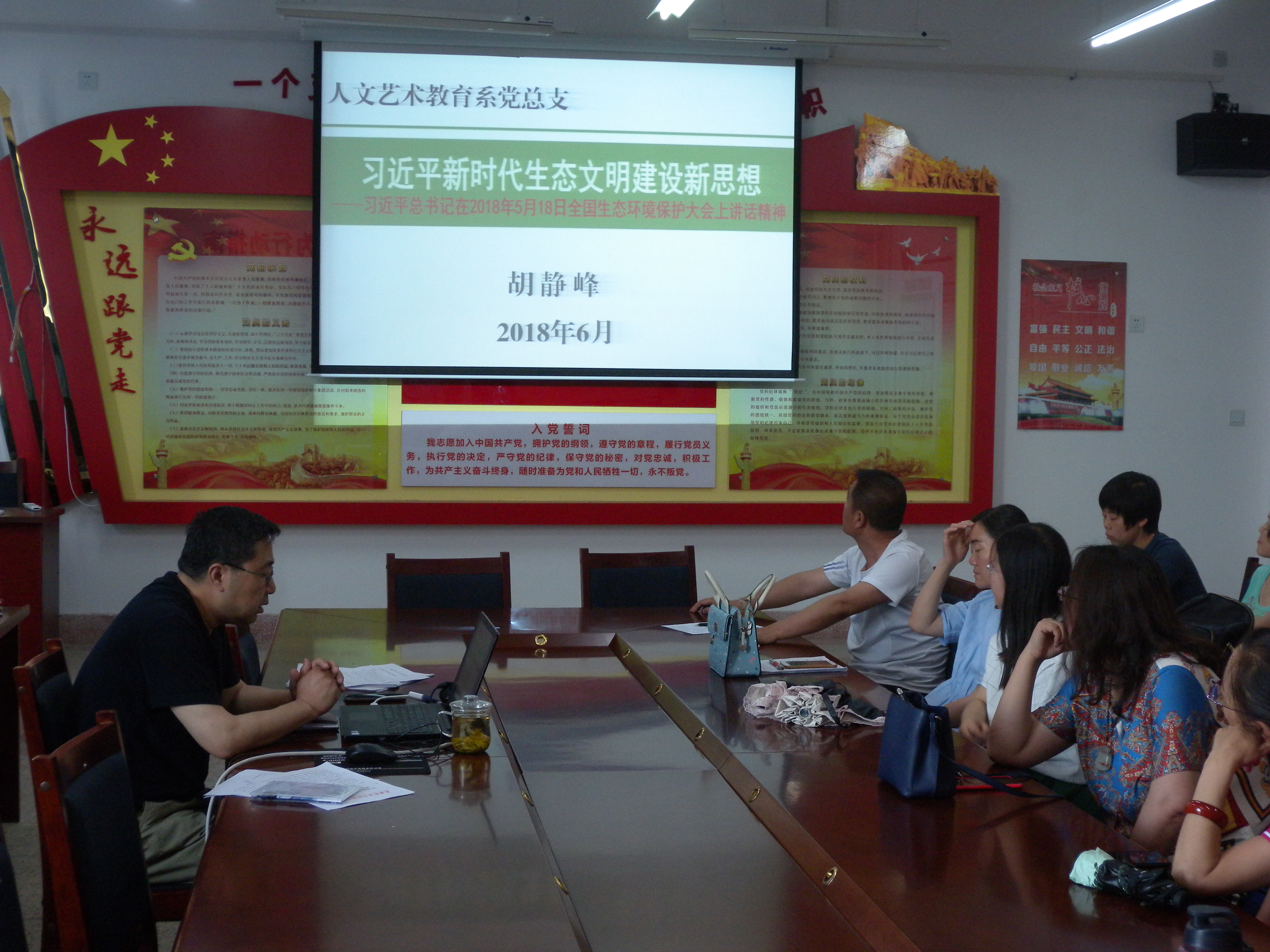 為深入學(xué)習(xí)習(xí)近平新時(shí)代中國特色社會(huì)主義思想,人文藝術(shù)教育系黨總支于6月13日下午在勵(lì)勤樓209黨員活動(dòng)室開展書記講黨課活動(dòng)。黨課由系黨總支書記胡靜峰主講,題目為《習(xí)近平新時(shí)代生態(tài)文明建設(shè)新思想》,系全體黨員參加了此次活動(dòng)。