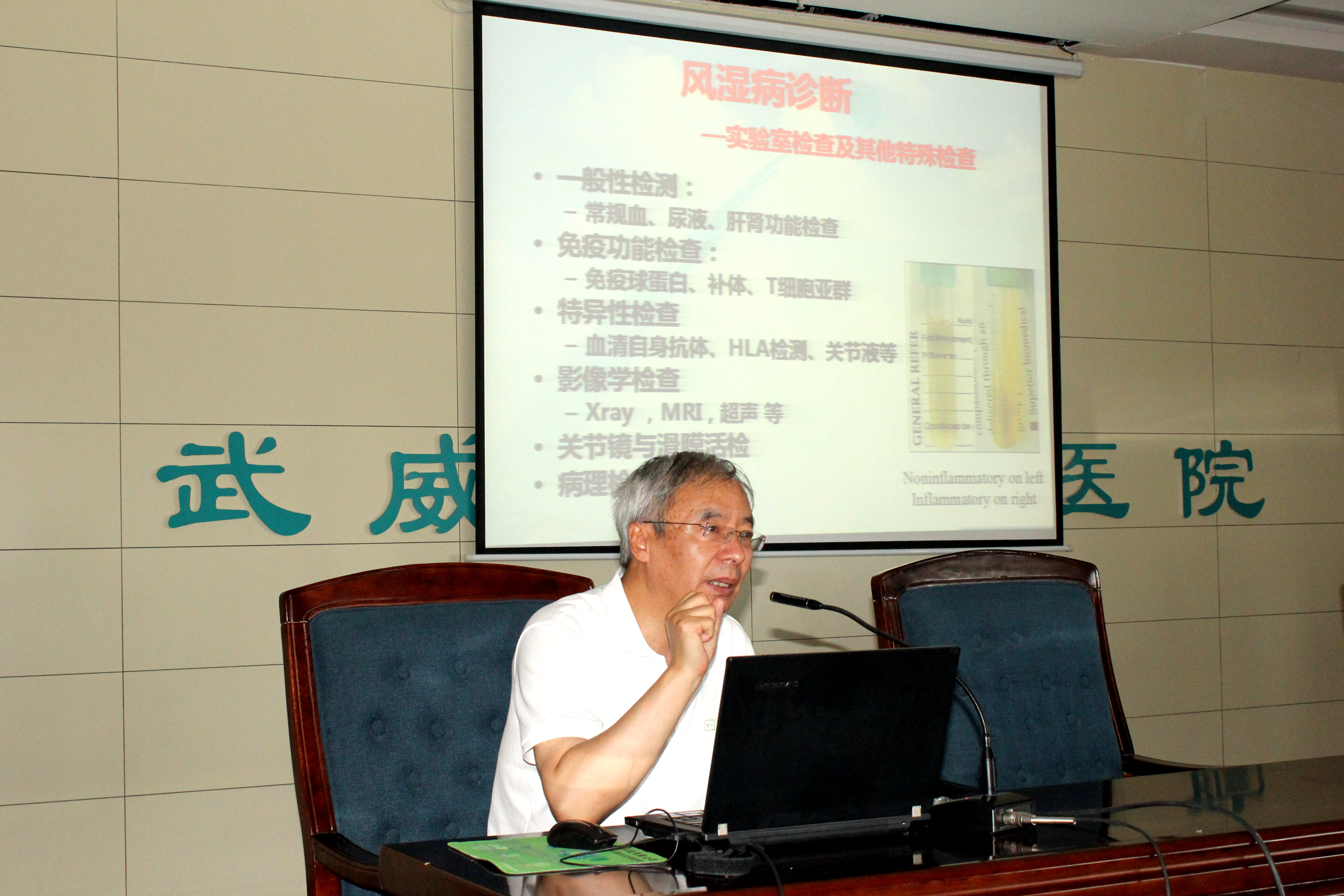 為提高醫(yī)務(wù)人員診治風(fēng)濕病的技術(shù)水平,學(xué)院直屬附屬醫(yī)院于6月29日下午,在內(nèi)科七樓會議室舉辦風(fēng)濕病診治學(xué)術(shù)報(bào)告會。醫(yī)院邀請?zhí)m大二院著名風(fēng)濕病專家王軼作“風(fēng)濕免疫實(shí)驗(yàn)室檢查”為題的學(xué)術(shù)報(bào)告,副院長張仁德主持會議,醫(yī)院各科室百余名醫(yī)療骨干參加學(xué)術(shù)會議聆聽報(bào)告。