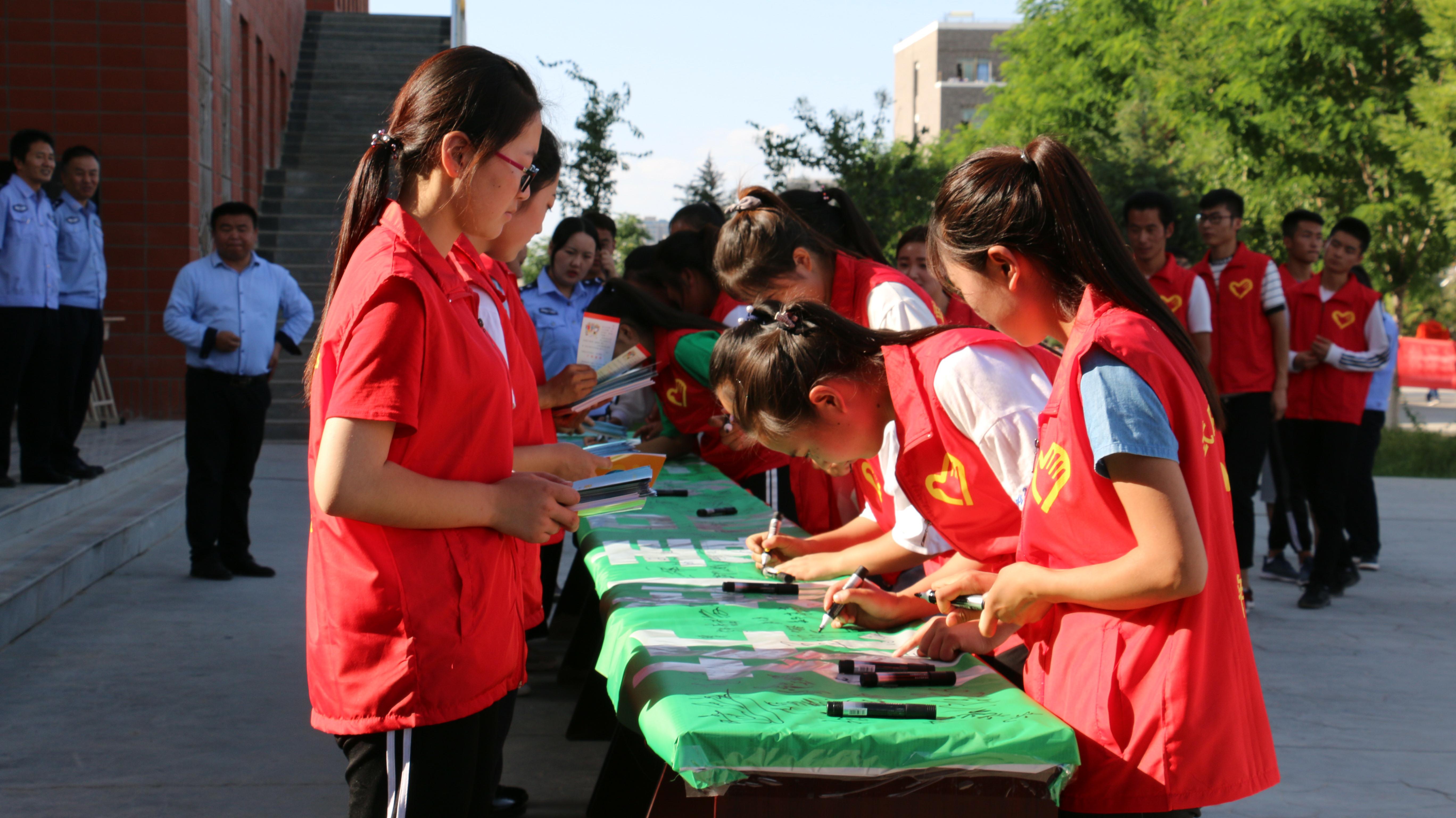 宣傳活動以“健康人生.綠色無毒”為主題,通過禁毒志愿者代表宣讀禁毒倡議書,不涉毒承諾簽名活動、發(fā)放宣傳資料、展示禁毒宣傳展板等形式,讓廣大青年學(xué)生更深刻地認(rèn)識到“毒品”這一社會公害給個人、家庭、社會帶來的危害,旨在提高廣大青年學(xué)生識毒、防毒、拒毒意識和參與禁毒人民戰(zhàn)爭的積極性。