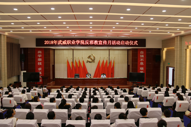 根據(jù)省教育廳印發(fā)的“2018年全省教育系統(tǒng)反邪教宣傳月宣傳周宣傳日活動(dòng)方案”要求,學(xué)院集中開展以“抵制邪教、和諧校園”為主題的反邪教宣傳教育活動(dòng)。6月14日,學(xué)院舉行了“武威職業(yè)學(xué)院2018年反邪教宣傳月活動(dòng)啟動(dòng)儀式”及師生簽名活動(dòng),師生代表共220余人參加了啟動(dòng)儀式,啟動(dòng)儀式由宣傳統(tǒng)戰(zhàn)部部長(zhǎng)王繼林主持。