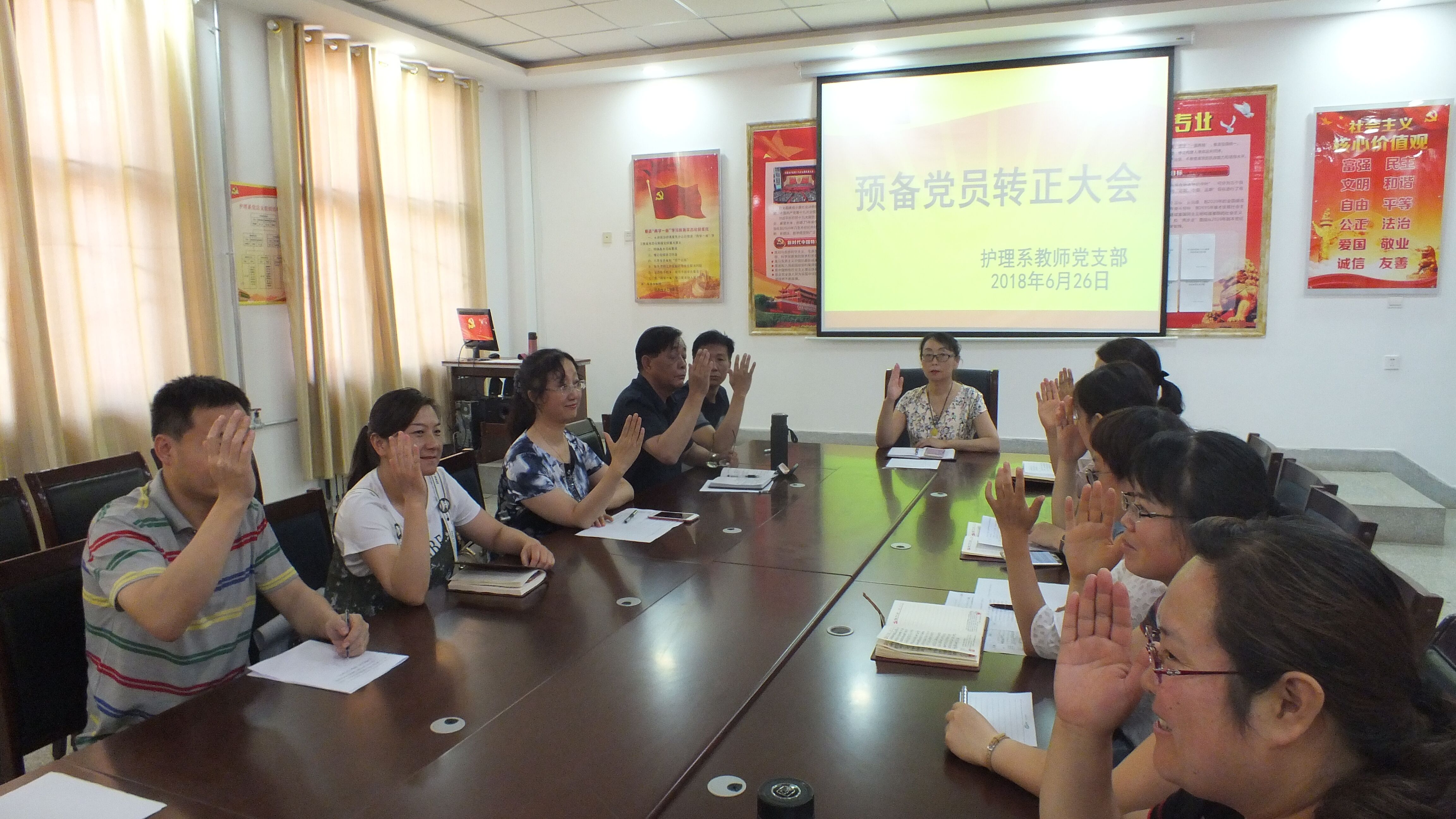教師黨支部由護(hù)理系主任、支部書記韓曉萍主持。韓曉萍向在座黨員介紹了本次大會(huì)的主要內(nèi)容,按照轉(zhuǎn)正流程,預(yù)備黨員張前同志宣讀了轉(zhuǎn)正申請(qǐng)書,總結(jié)匯報(bào)了預(yù)備期間的思想認(rèn)識(shí)、理論學(xué)習(xí)、工作生活情況。隨后,支部委員會(huì)和入黨介紹人分別介紹了對(duì)預(yù)備黨員同志的考察情況,認(rèn)為該同志能夠主動(dòng)學(xué)習(xí)黨的知識(shí)、工作認(rèn)真負(fù)責(zé)、能夠自覺(jué)履行黨員義務(wù),具備一名合格黨員的基本素質(zhì)。其他參會(huì)黨員也發(fā)表了意見(jiàn),希望他進(jìn)一步加強(qiáng)學(xué)習(xí),不斷提升自己,發(fā)揮黨員模范帶頭作用。