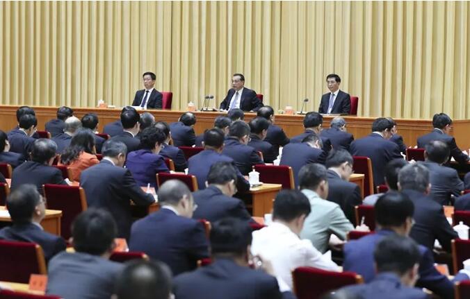 李克強(qiáng)在會(huì)上講話。汪洋、王滬寧、趙樂(lè)際、韓正出席會(huì)議。