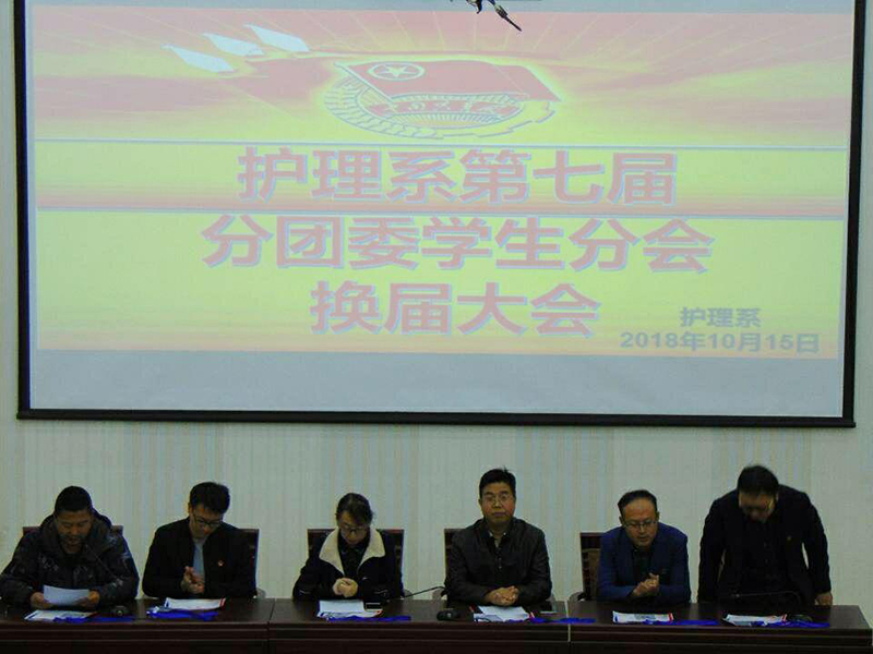 近日護(hù)理系分團(tuán)委學(xué)生分會(huì)第七屆換屆選舉于正德廳順利召開,護(hù)理系黨總支書記張建輝、系主任韓曉萍、系分團(tuán)委書記楊杰、輔導(dǎo)員寇明赟、張前、龐大勇,2017級、2018級團(tuán)干部出席了本次大會(huì)。