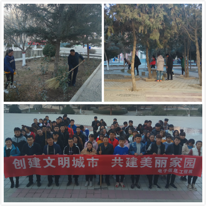 11月22日下午,電子信息工程系黨總支組織黨員教師、入黨積極分子和2018級學生入黨申請人開展了環(huán)境衛(wèi)生治理工作,清理校園衛(wèi)生死角,用實際行動助推武威市文明城市創(chuàng)建和全省文明校園創(chuàng)建。