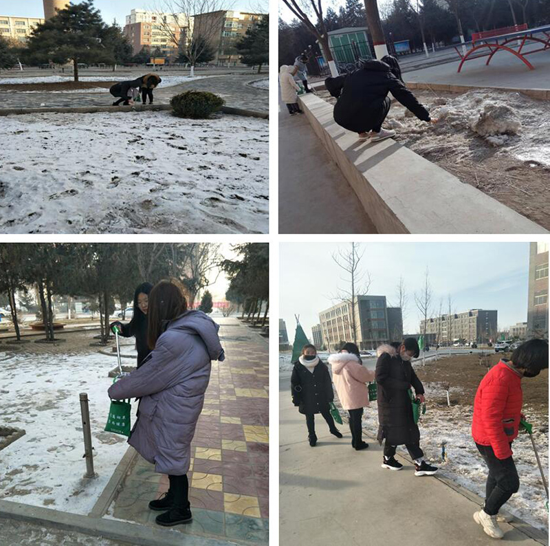 活動期間,由系輔導(dǎo)員齊斌文老師和班主任帶領(lǐng)同學(xué)們準(zhǔn)備好工具準(zhǔn)時在各區(qū)域集合,對校園內(nèi)煙頭、垃圾進(jìn)行撿拾,為全院師生營造了良好的學(xué)習(xí)氛圍。