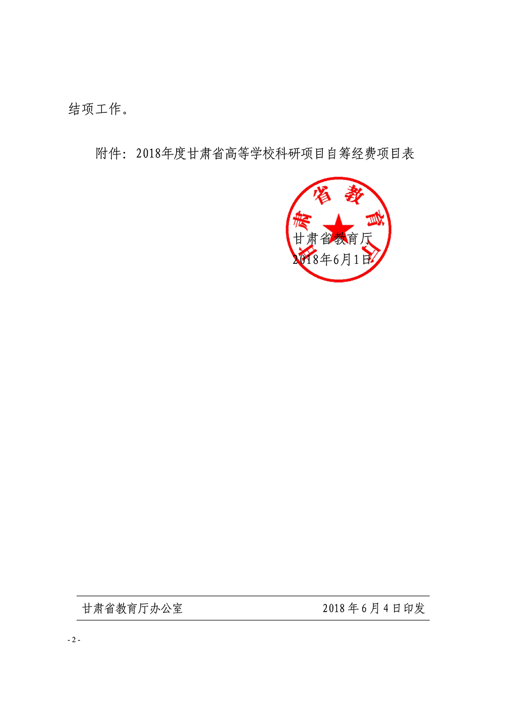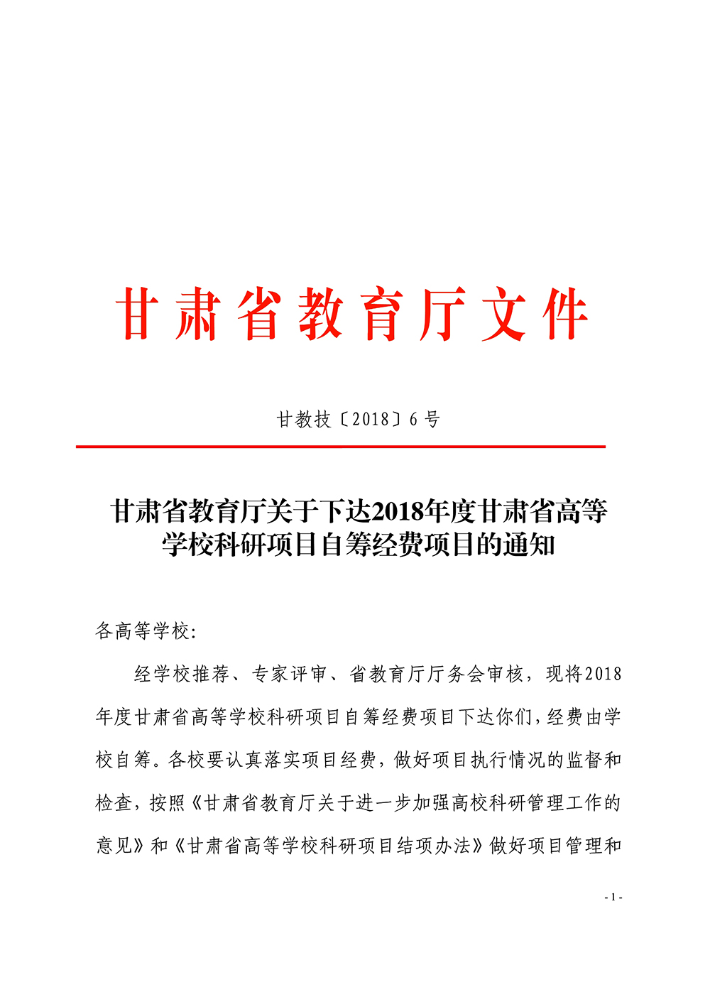 甘肅省教育廳關(guān)于下達2018年度甘肅省高等學校科研項目自籌經(jīng)費項目的通知