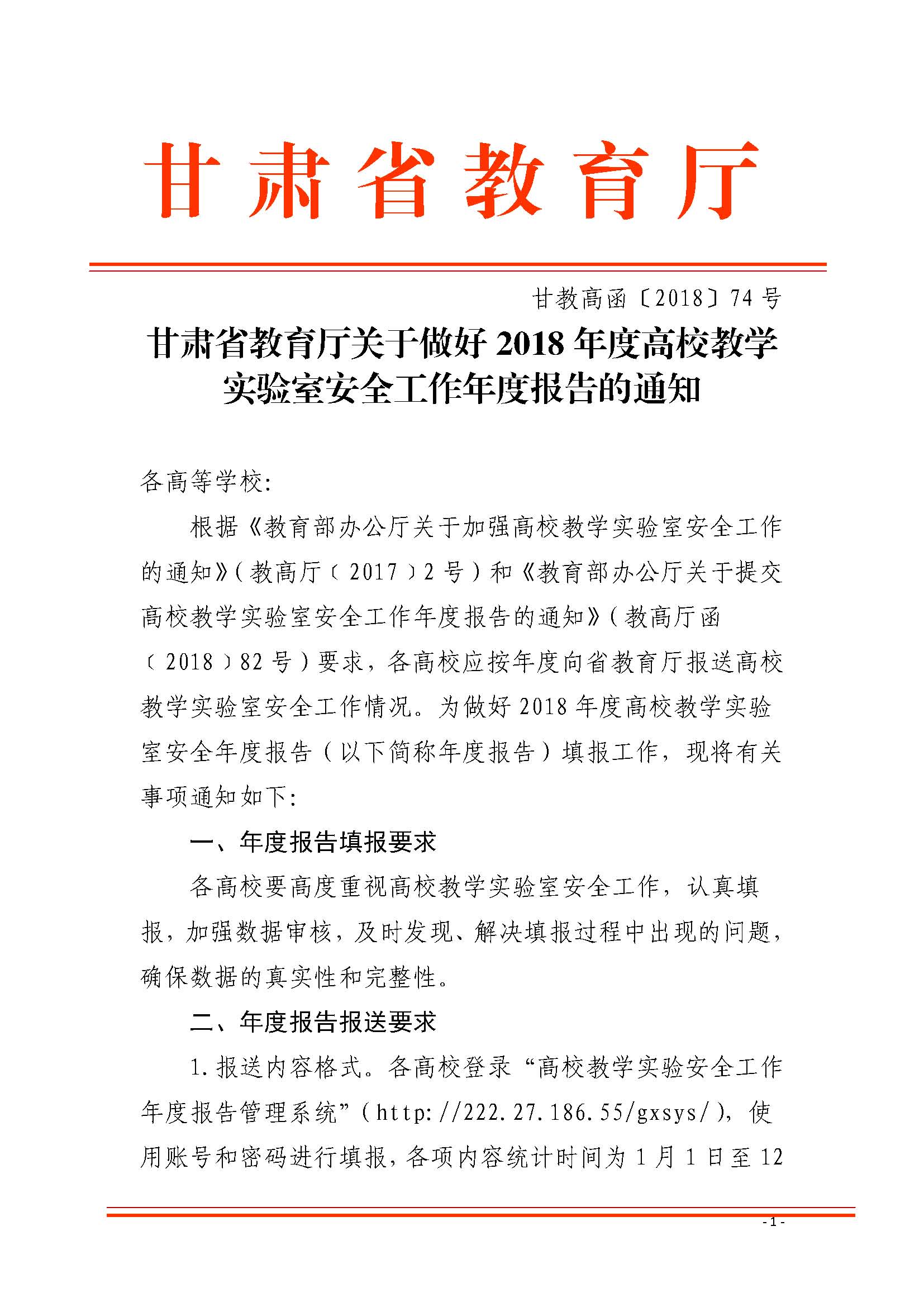 甘肅省教育廳關于做好2018年度高校教學實驗室安全工作年度報告的通知