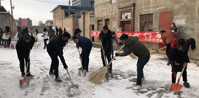 經(jīng)濟(jì)管理系黨總支開展“助力創(chuàng)城”清理街道積雪主題黨日活動