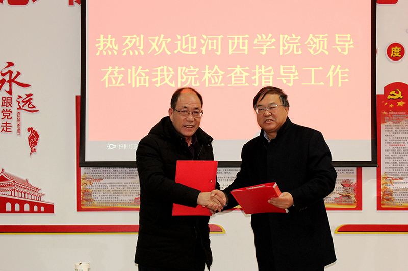 為促進高等教育和中醫(yī)藥事業(yè)健康發(fā)展,2019年1月9日上午10時,武威職業(yè)學(xué)院附屬中醫(yī)醫(yī)院內(nèi)科一樓會議室里歡聲笑語,喜氣洋洋,河西學(xué)院與武威職業(yè)學(xué)院附屬中醫(yī)醫(yī)院建立非直屬附屬醫(yī)院簽約授牌儀式正在這里隆重舉行。