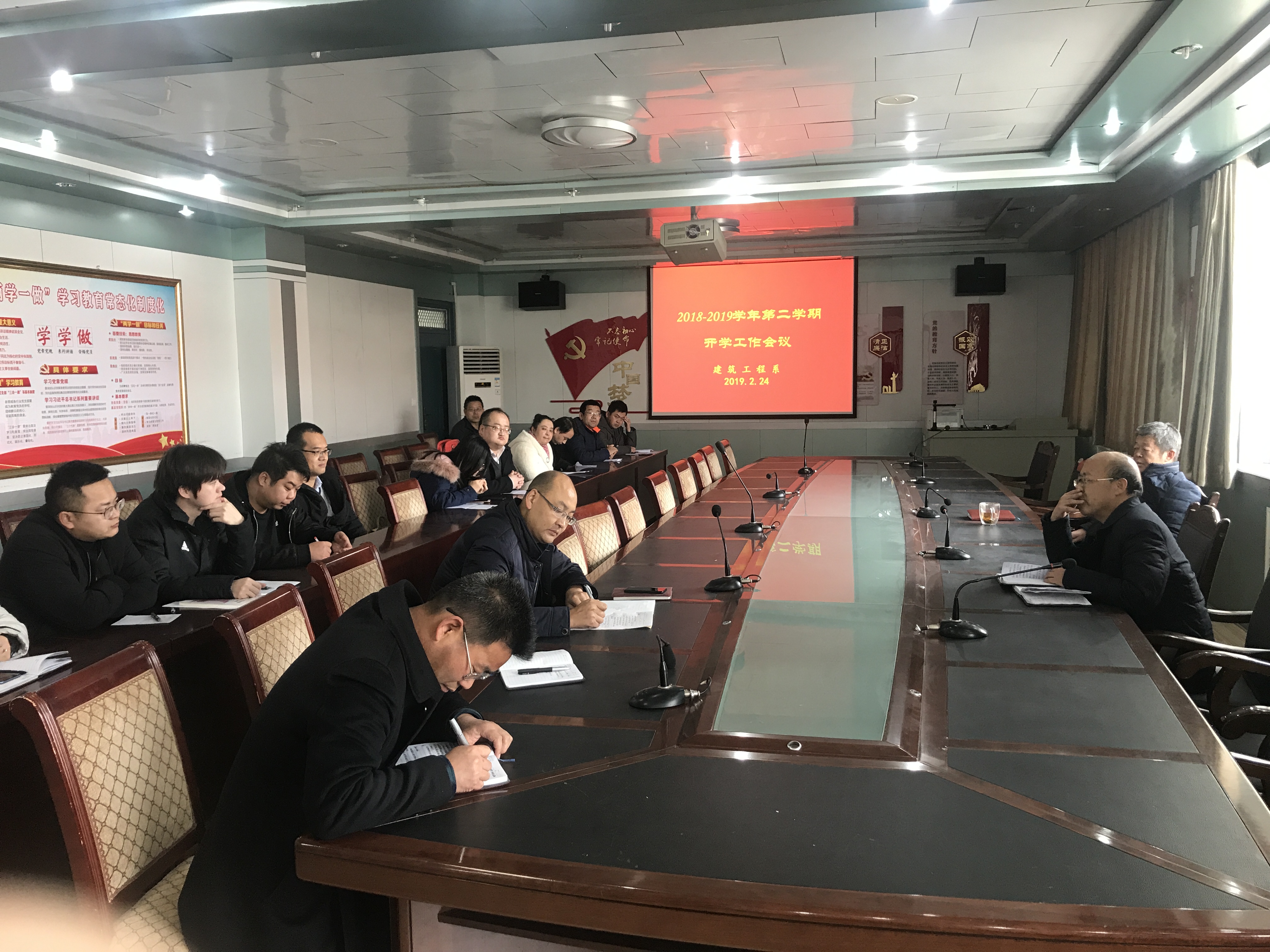 2月24日下午,建筑工程系組織全體專兼職教師在博學(xué)樓二樓會(huì)議室召開(kāi)新學(xué)期開(kāi)學(xué)工作會(huì)議。