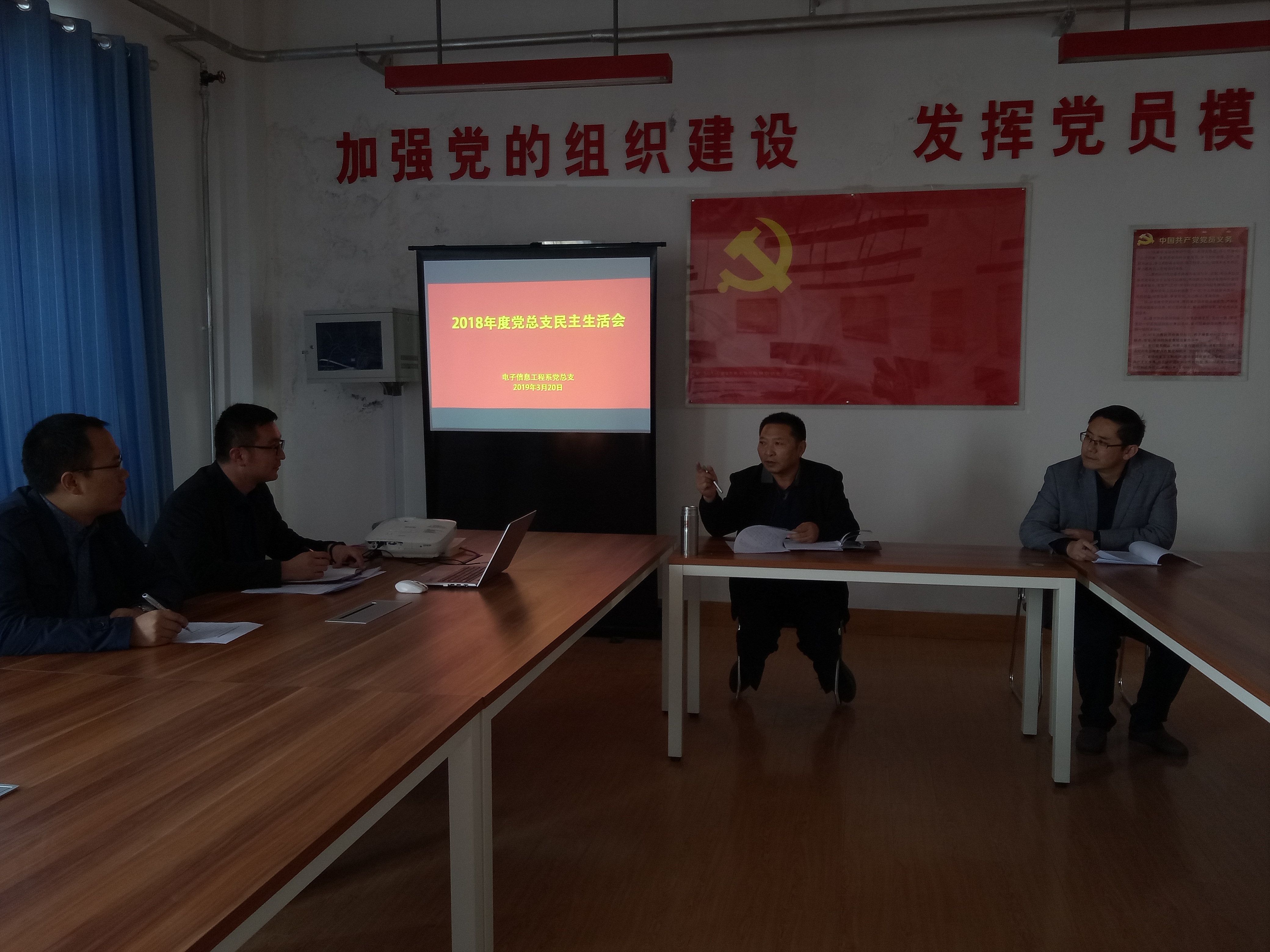 3月20日下午,電子信息工程系黨總支在尚德樓五樓黨員活動(dòng)室,召開(kāi)了2018年度班子民主生活會(huì)。會(huì)議由黨總支書記袁青年同志主持,黨總支班子成員、系主任參加。
