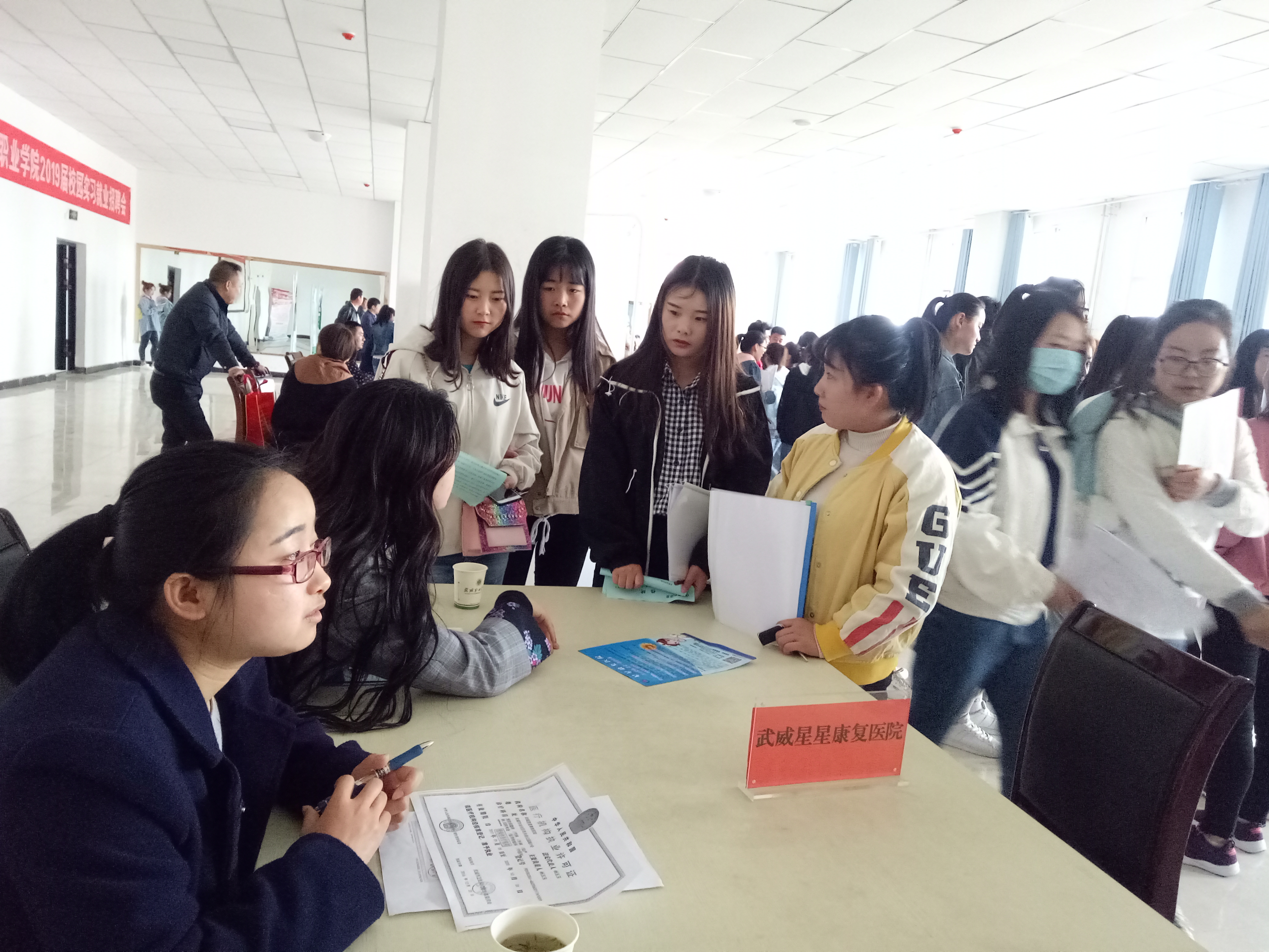 參加本次招聘會(huì)的共有來(lái)自省內(nèi)外醫(yī)療相關(guān)單位10家,包括東莞定遠(yuǎn)陶齒制品有限公司、康泰健美醫(yī)療科技(深圳)有限公司、武威遠(yuǎn)方藥業(yè)、武威市西藝義齒制作有限公司、?武威寶山口腔醫(yī)院、紅山窯衛(wèi)生院、武威星星康復(fù)醫(yī)院等共提供150多個(gè)就業(yè)崗位,基本滿足我系四個(gè)專業(yè)畢業(yè)的就業(yè)需求。