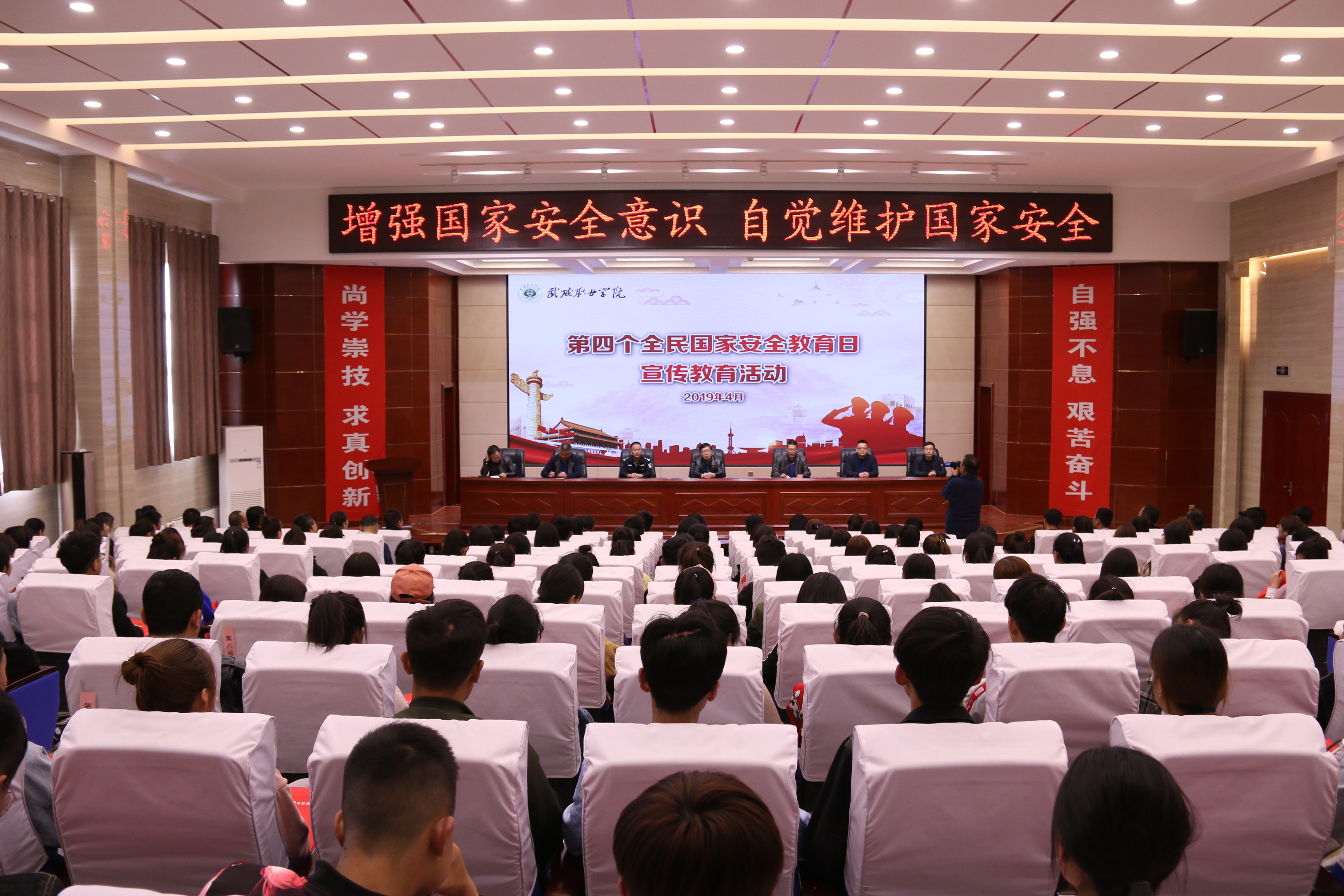 4月15日下午,學(xué)院聯(lián)合武威市國(guó)家安全局、涼州區(qū)公安局西關(guān)街派出所在學(xué)院大學(xué)生活動(dòng)中心組織開展了第四個(gè)“全民國(guó)家安全教育日”宣傳活動(dòng),武威市國(guó)家安全局副局長(zhǎng)李宏、學(xué)院副院長(zhǎng)王永緒、涼州區(qū)公安局西關(guān)派出所副所長(zhǎng)杜文義,學(xué)院保衛(wèi)處、宣傳統(tǒng)戰(zhàn)部、學(xué)生工作處、院團(tuán)委等部門負(fù)責(zé)人及各系師生代表500多人參加宣傳活動(dòng)。