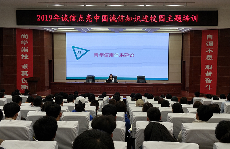 為進一步拓寬誠信知識宣傳的深度和廣度,提升我院青年學生的誠信意識,增強同學們信用理念和防范重大風險的意識, 3月30日上午,2019年“誠信點亮中國”誠信知識進校園活動在菁英廳舉辦,團省委青年信用體系建設領導小組辦公室主任高振葉作了《青年信用體系建設與志愿中國》主題講座,團市委少工委副主任許娜出席活動,院團委教師和220學生代表參加了培訓。