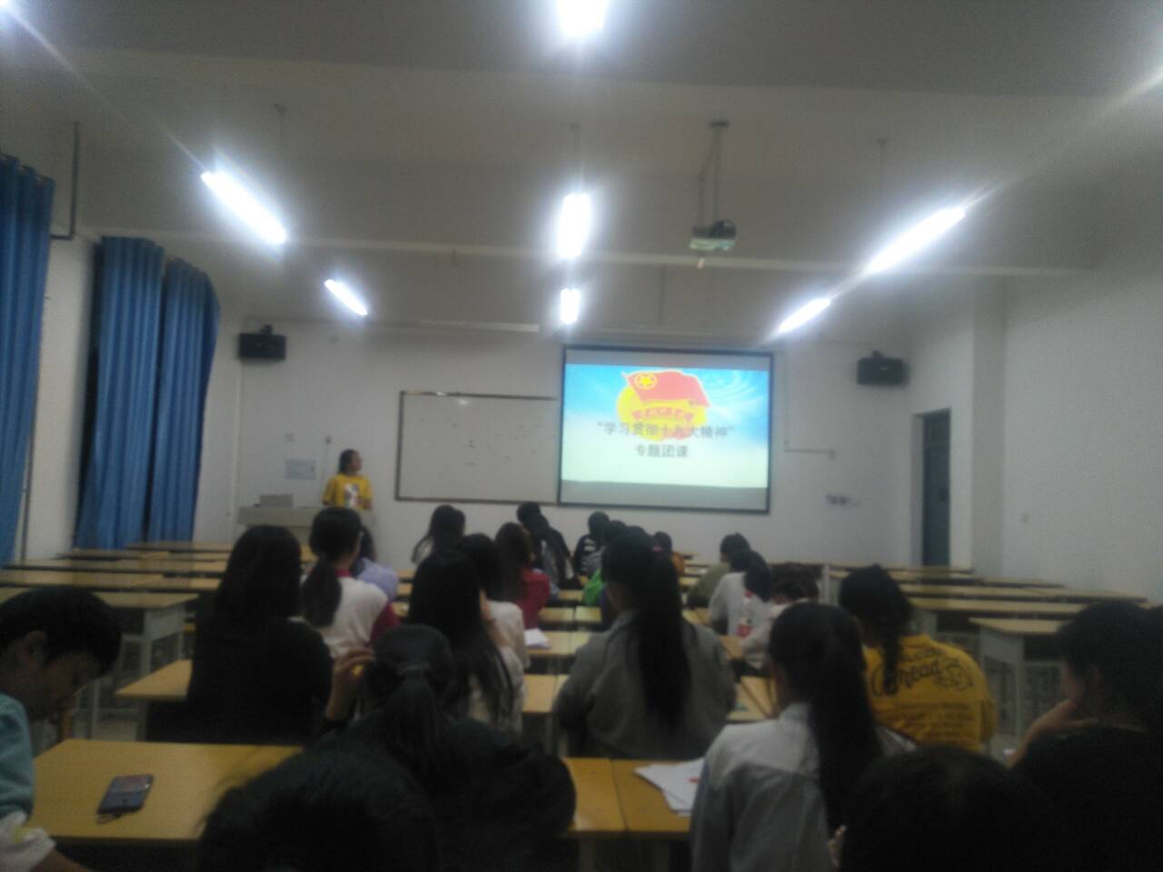 為了進(jìn)一步加強(qiáng)團(tuán)員的政治思想觀念,增強(qiáng)團(tuán)員對(duì)團(tuán)組織的深刻認(rèn)識(shí),提高團(tuán)員對(duì)黨的相關(guān)知識(shí)的了解,為團(tuán)員提供入黨流程及相關(guān)事項(xiàng)講解,2019年5月23日晚八點(diǎn)整,人文藝術(shù)教育系在勵(lì)勤樓107教室開展了兩個(gè)多小時(shí)的團(tuán)課演講。本次比賽主持人丁樂樂,參與演講的人員有17、18級(jí)團(tuán)支書。
