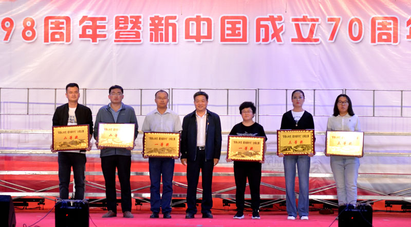 活動(dòng)中,趙明為合唱比賽獲獎(jiǎng)集體頒發(fā)了獎(jiǎng)牌,張富國(guó)為2019屆“優(yōu)秀畢業(yè)生”代表頒發(fā)了榮譽(yù)證書(shū),王永緒、陳鋼為學(xué)院“青春心向黨·建功新時(shí)代”主題攝影、征文比賽獲獎(jiǎng)?wù)哳C發(fā)了榮譽(yù)證書(shū)。
