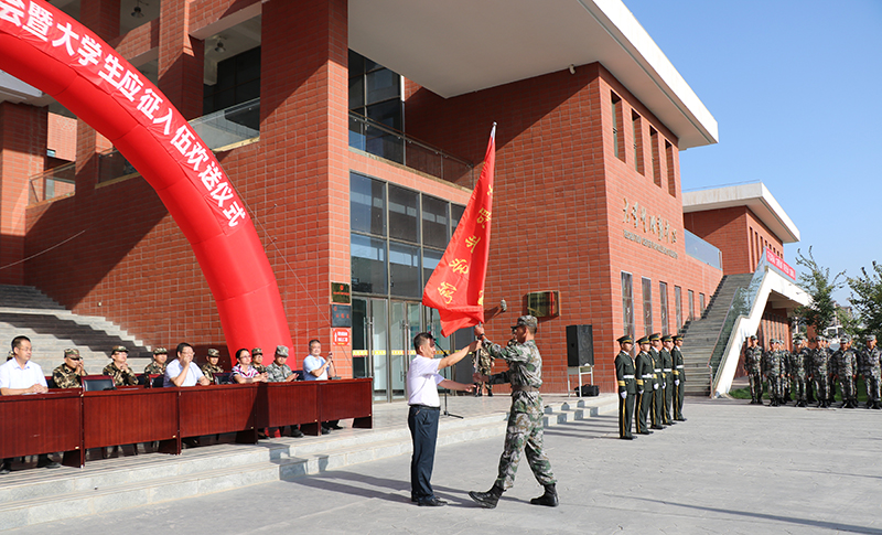 9月4日上午,學(xué)院2019級(jí)新生軍訓(xùn)動(dòng)員大會(huì)暨大學(xué)生應(yīng)征入伍歡送儀式在大學(xué)生活動(dòng)中心廣場(chǎng)舉行。學(xué)院黨委書記、院長(zhǎng)趙明出席并向軍訓(xùn)團(tuán)授旗,黨委副書記翟存祥寄語全體新生,院領(lǐng)導(dǎo)張富國(guó)、王永緒、田迎春、何毅、張開禮及31666部隊(duì)營(yíng)長(zhǎng)李明出席,承訓(xùn)單位55名教官,學(xué)院各系黨總支書記、輔導(dǎo)員、新生班班主任,2019年參軍入伍的28名大學(xué)生、2019級(jí)4157名學(xué)生參加了大會(huì)。大會(huì)由副院長(zhǎng)王守云主持。