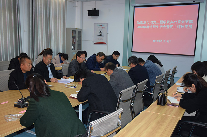 根據(jù)學(xué)院組織人事處《關(guān)于召開2018年度基層黨組織組織生活會和開展民主評議黨員的通知》要求,結(jié)合學(xué)院實(shí)際,新能源與動力工程學(xué)院辦公室黨支部于3月14日下午在黨員活動室召開組織生活會并開展民主評議黨員活動。會議由黨支部書記任陶主持,學(xué)院黨委委員、副院長翟存祥同志以普通黨員身份出席會議,并對會議點(diǎn)評指導(dǎo)。