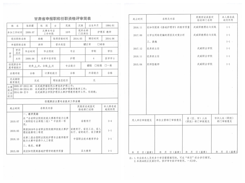 武威職業(yè)學院關于2021年教師副教授、講師職稱評…