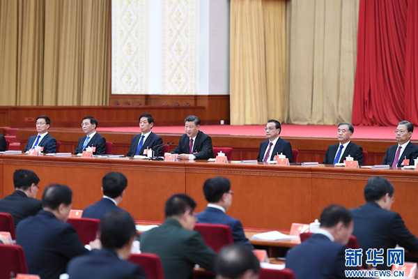 中國(guó)共產(chǎn)黨第十九屆中央委員會(huì)第四次全體會(huì)議,于2019年10月28日至31日在北京舉行。這是習(xí)近平、李克強(qiáng)、栗戰(zhàn)書(shū)、汪洋、王滬寧、趙樂(lè)際、韓正等在主席臺(tái)上。 新華社記者 張領(lǐng) 攝