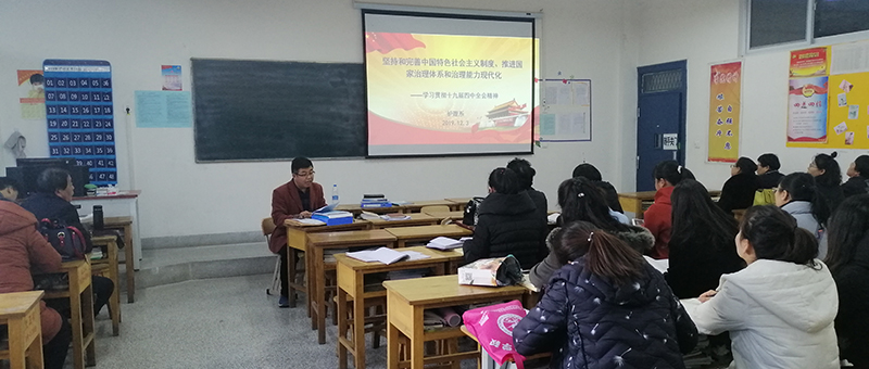12月3日下午,護(hù)理系在明遠(yuǎn)樓214教室召開宣講黨的十九屆四中全會精神報(bào)告會,系黨總支書記張建輝同志以《堅(jiān)持和完善中國特色社會主義制度、推進(jìn)國家治理體系和治理能力現(xiàn)代化》為題進(jìn)行宣講,全系教師聆聽了本次報(bào)告會。