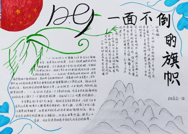 今年是“12.9”愛國運動84周年?,F代農業(yè)技術系的十二個班級通過辦手抄報的形式開展紀念“12·9”運動,旨在加強學生的愛國主義教育,弘揚愛國主義精神,教育學生銘記歷史,勿忘國恥,增強民族自豪感。