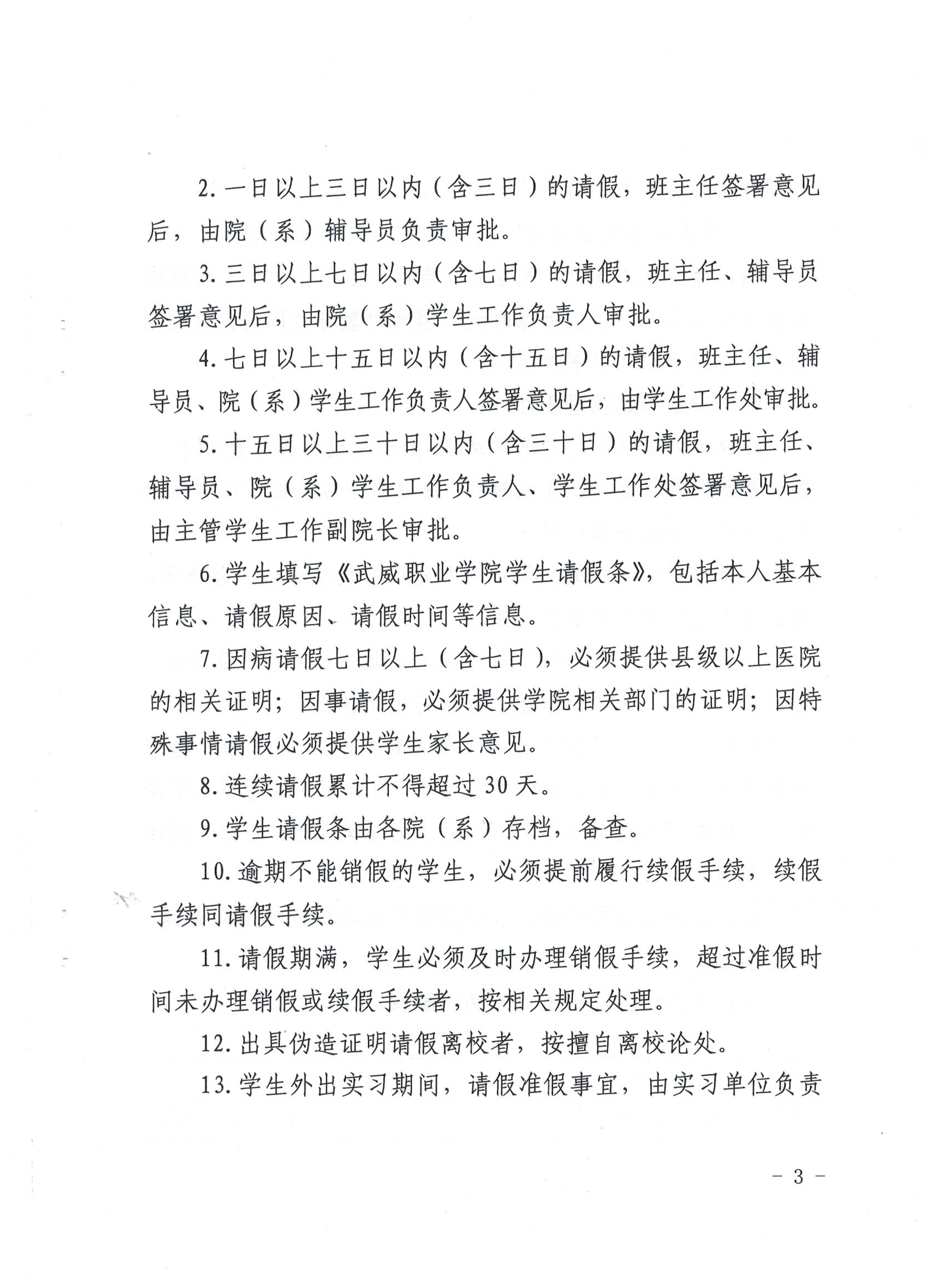 武威職業(yè)學(xué)院學(xué)生考勤管理辦法