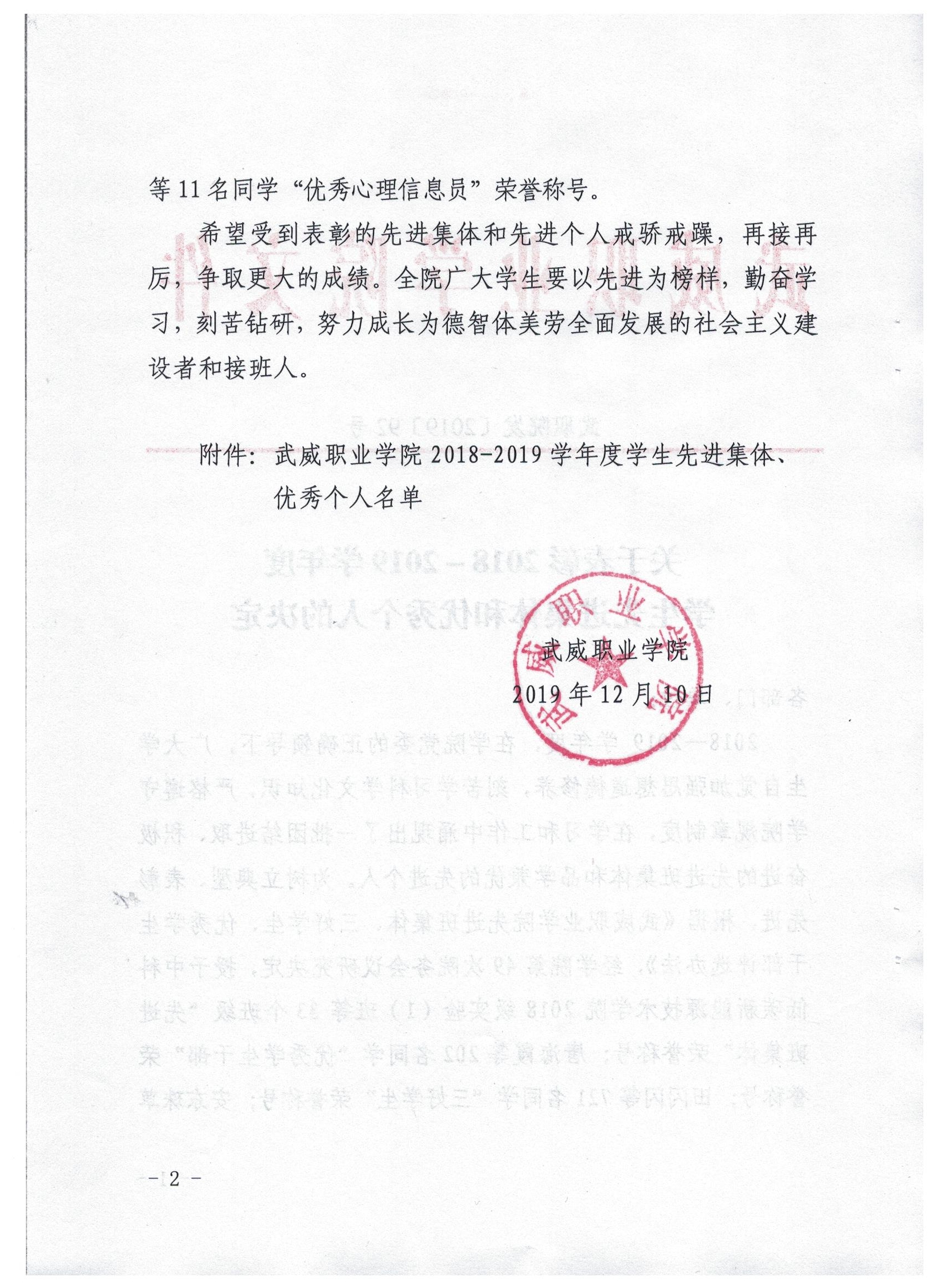 關(guān)于表彰2018-2019學年度學生工作先進個人的決定