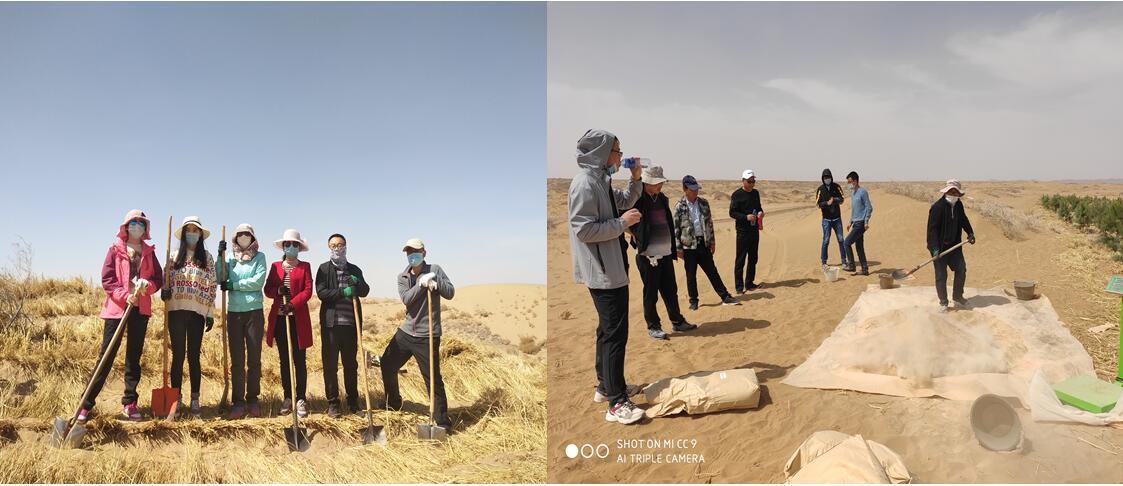 由我院與中科武威新能源研究所合作的淀粉基超級吸水材料在沙漠植保工程示范試驗(yàn)項(xiàng)目組成員自4月8日起已陸續(xù)赴武威園區(qū)、民勤縣青土湖,涼州區(qū)長城鎮(zhèn)、古浪八步沙等地推廣應(yīng)用工作,陸續(xù)實(shí)施壓沙、沙生苗木種植、植被樣點(diǎn)監(jiān)測等,截至目前累計(jì)完成壓沙任務(wù)300畝,苗木種植任務(wù)220畝。