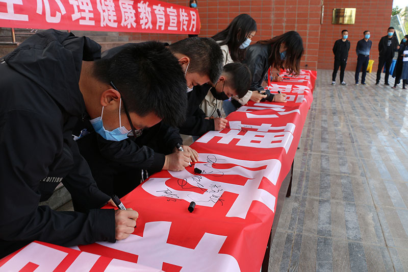 儀式最后,參加活動(dòng)的全體師生在“提升心理免疫力 筑高心理防護(hù)強(qiáng)”的宣傳橫幅上進(jìn)行簽字,一起承諾特殊時(shí)期做好心理防護(hù),用積極心態(tài)面對(duì)生活。