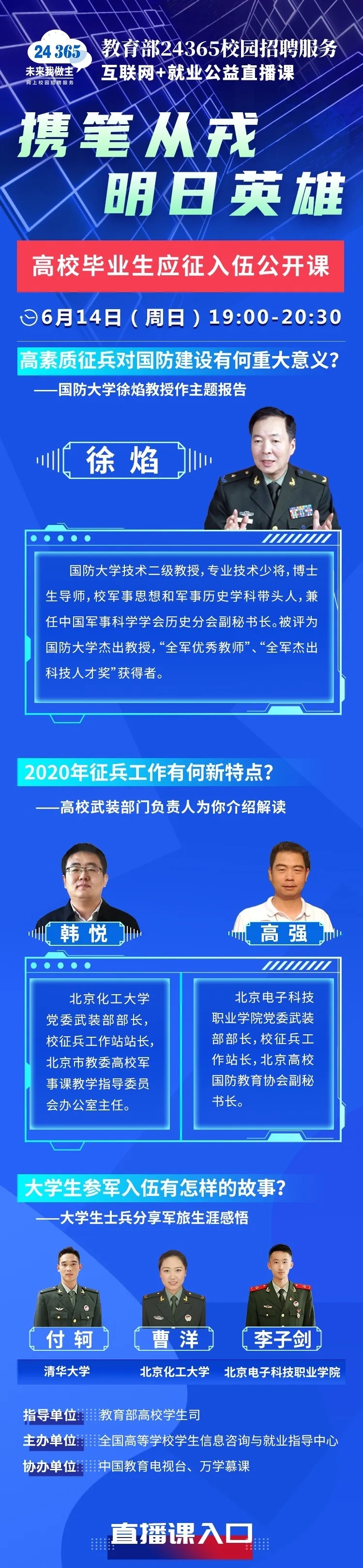 教育部24365就業(yè)公益課程:攜筆從戎 明日英雄——高校畢業(yè)生應(yīng)征入伍公開課