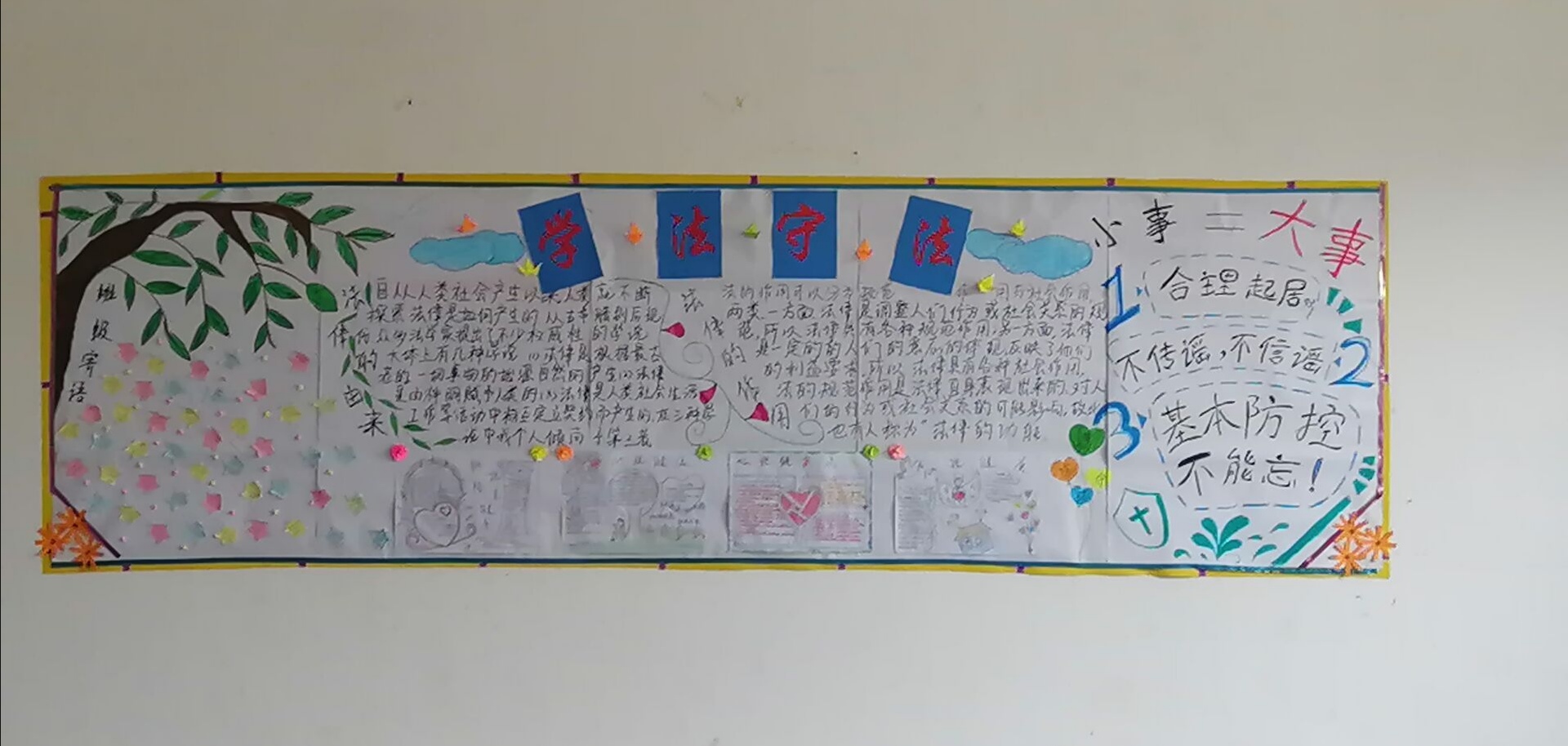 ?此次主題板報(bào)活動(dòng)的開(kāi)展,進(jìn)一步充實(shí)了板報(bào)的宣傳教育功能,展現(xiàn)了我系學(xué)子良好的精神風(fēng)貌,培養(yǎng)了大學(xué)生知法守法的優(yōu)良品質(zhì),營(yíng)造了健康、積極進(jìn)取的學(xué)風(fēng),更加提升了學(xué)生的法律常識(shí)。我系將借此活動(dòng)為契機(jī),加強(qiáng)我系學(xué)生的法律道德意識(shí),引導(dǎo)我系學(xué)生知法于心,守法于行。