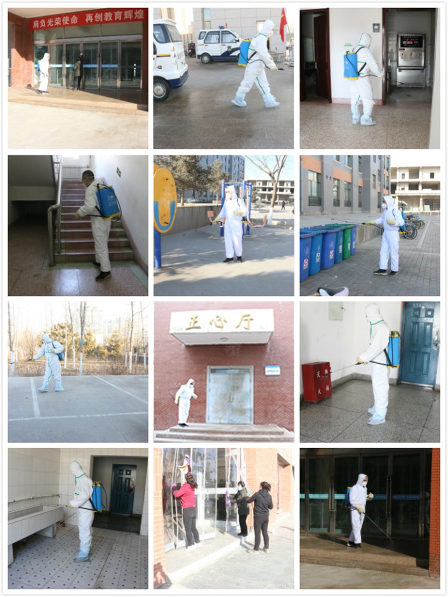 本次全院集中消毒殺菌工作覆蓋辦公樓、教學(xué)樓、公寓樓、實(shí)驗(yàn)樓、家屬樓、門衛(wèi)值班室等區(qū)域,嚴(yán)格選用具有國家批準(zhǔn)文號的消毒劑,配制前工作人員認(rèn)真閱讀使用說明,各類消毒劑嚴(yán)格按照配比使用;教學(xué)樓、實(shí)驗(yàn)室等室內(nèi)地面和空氣消毒時(shí),在關(guān)閉門窗、室內(nèi)無人員活動情況下進(jìn)行;辦公室采用75%的乙醇,對辦公桌、辦公家具等進(jìn)行擦拭消毒。