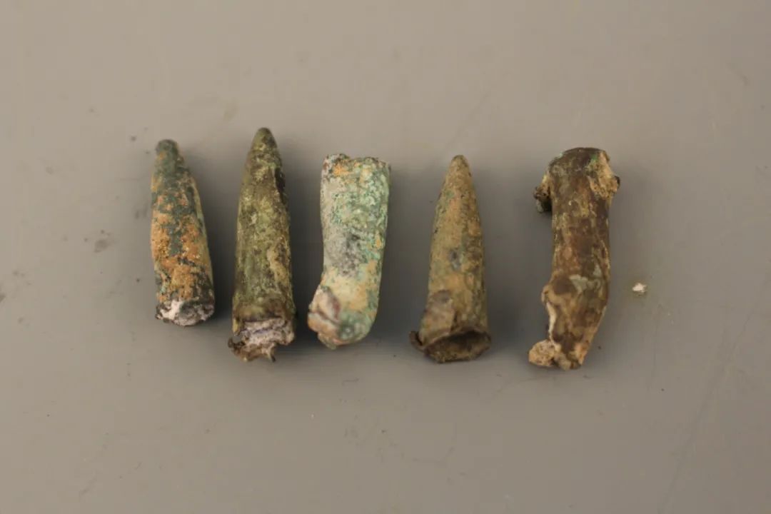 1932年中秋節(jié)過(guò)后,侵華日軍在平頂山制造了一場(chǎng)針對(duì)無(wú)辜平民的大屠殺。這5枚銹跡斑斑的子彈頭,于1971年在撫順平頂山慘案遺址出土。這些沾染著平頂山無(wú)辜平民鮮血的子彈頭,是侵華日軍屠殺無(wú)辜百姓的鐵證。