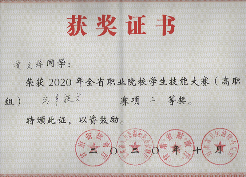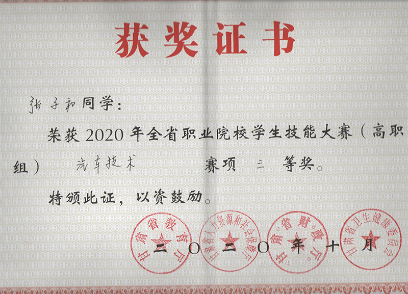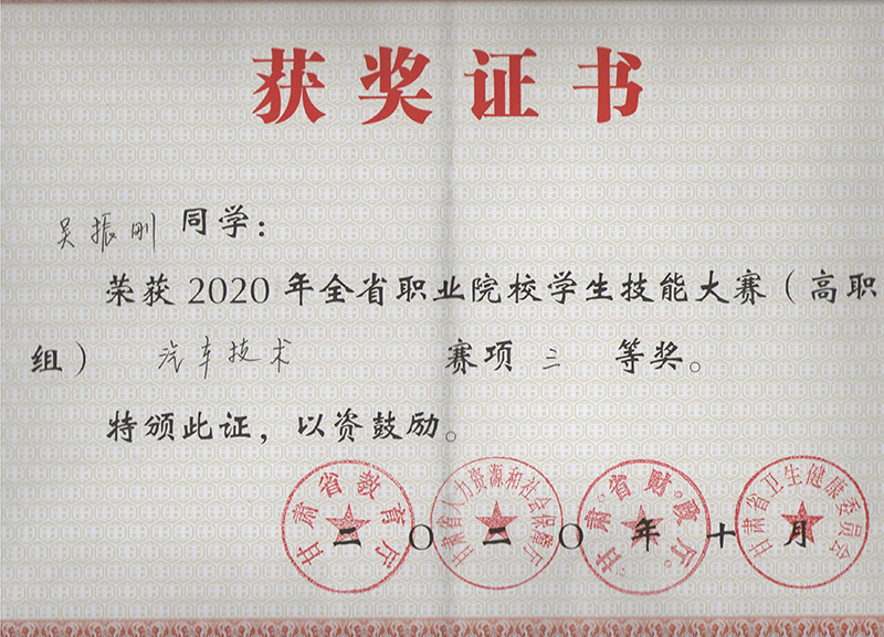 汽車工程系學(xué)生在2020年甘肅省職業(yè)院校學(xué)生技能大賽汽車技術(shù)賽項(xiàng)中獲獎(jiǎng)