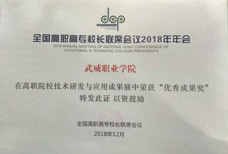 12月8日至9日,學院黨委書記、院長趙明教授、副院長翟存祥教授帶隊參加了在福建福州召開的全國高職高專校長聯(lián)席會議2018年年會。學院自主研發(fā)的“光伏組件智能清潔裝置”榮獲高職院校技術研發(fā)與應用成果 “優(yōu)秀成果獎”(全國僅36所高職院校獲此殊榮,甘肅省僅2所),“學院與中科院先進核能創(chuàng)新研究院聯(lián)合辦學創(chuàng)新發(fā)展”案例入選教育成果案例展。