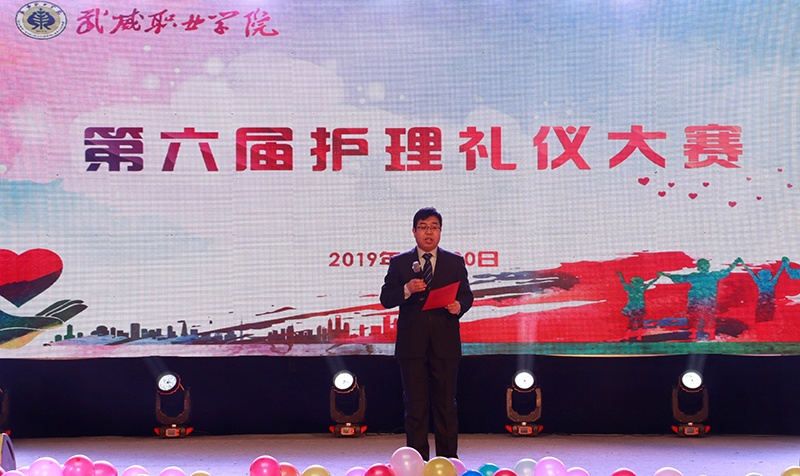 為傳承中華禮儀文明,弘揚南丁格爾精神,強化學生護理專業(yè)技能,培養(yǎng)學生文明、端莊、仁愛的良好形象、助推我市精神文明建設,12月20日,在體育館成功舉行了武威職業(yè)學院第六屆護理禮儀大賽,此次大賽的主題為“承醫(yī)傳德不忘初心、 展現(xiàn)護生禮儀風采”。學院黨委書記、院長趙明、副院長王永緒及部分部門、系部負責人出席本次活動,護理系全體教師及1300多名學生觀看了本次比賽。