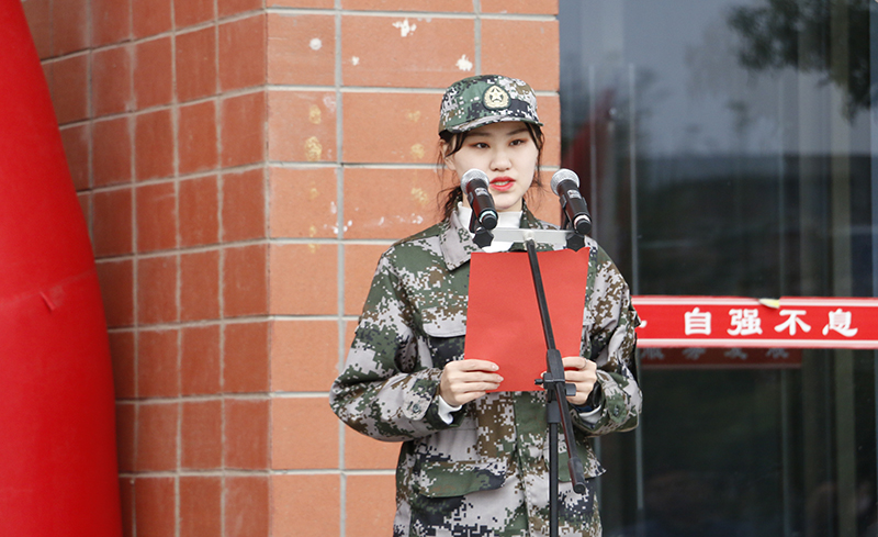 2020級(jí)學(xué)前教育大專七班學(xué)生牛惠代表全體新生承諾,在軍訓(xùn)期間服從命令、聽(tīng)從指揮,磨練意志、鍛煉作風(fēng),傳承發(fā)揚(yáng)、鞏固成果,以飽滿的熱情和高昂的斗志出色的完成軍訓(xùn)任務(wù)。軍訓(xùn)教官?gòu)埡酵具M(jìn)行表態(tài)發(fā)言,結(jié)合學(xué)生自身實(shí)際,合理制定訓(xùn)練計(jì)劃,嚴(yán)密科學(xué)實(shí)施,文明施訓(xùn),確保高質(zhì)量、高標(biāo)準(zhǔn)完成此次軍訓(xùn)任務(wù)。