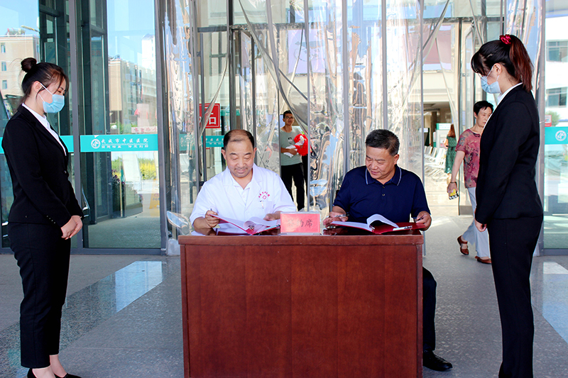 趙明同志代表武威職業(yè)學(xué)院,張?zhí)斓峦敬砦渫兄嗅t(yī)醫(yī)院共同簽訂了教師實(shí)踐基地協(xié)議。