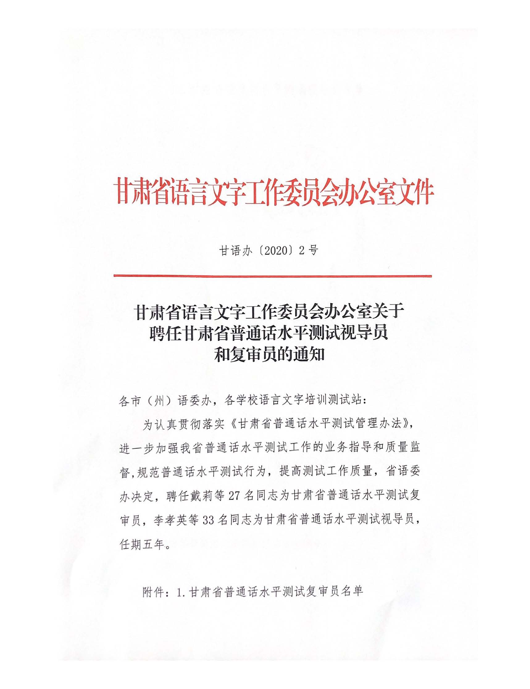 6月24日,我院護理系教師趙穎教授獲得甘肅省普通話水平測試復(fù)審員資格。根據(jù)《甘肅省語言文字工作委員會辦公室關(guān)于聘任甘肅省普通話水平測試視導(dǎo)員和復(fù)審員的通知》評選條件,學(xué)院組織推薦趙穎老師為“甘肅省普通話水平測試復(fù)審員”。經(jīng)甘肅省語言文字工作委員會評審,趙穎老師獲得甘肅省普通話水平測試復(fù)審員”資格,這是我院語言文字工作方面產(chǎn)生的第一位“省級測試復(fù)審員”。