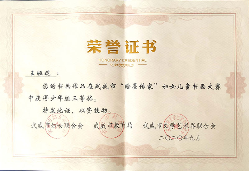 人文藝術教育系學生參加武威市“翰墨傳家”婦女兒童書畫大賽獲獎