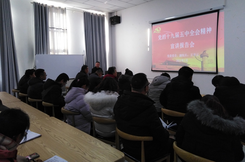 為深入學(xué)習(xí)貫徹黨的十九屆五中全會精神。1月4日,學(xué)院黨委委員、副院長王守云同志在大學(xué)生活動中心201會議室為教學(xué)管理第一黨支部和教學(xué)管理第二黨支部全體黨員講授了學(xué)習(xí)貫徹黨的十九屆五中全會精神專題黨課。