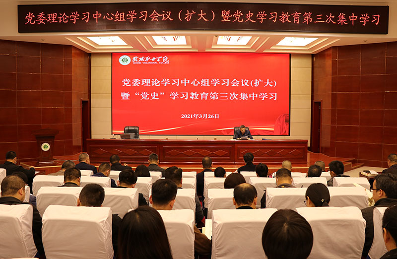 3月26日下午,學院黨委在菁英廳召開2021年3月黨委理論學習中心組學習會議。深入學習領(lǐng)會習近平總書記在中央黨校(國家行政學院)中青年干部培訓班開班式上的重要講話精神。認真學習研讀《中國共產(chǎn)黨簡史》《毛澤東、鄧小平、江澤民、胡錦濤關(guān)于中國共產(chǎn)黨歷史論述摘編》和《論中國共產(chǎn)黨歷史(習近平)》中的篇目章節(jié)。