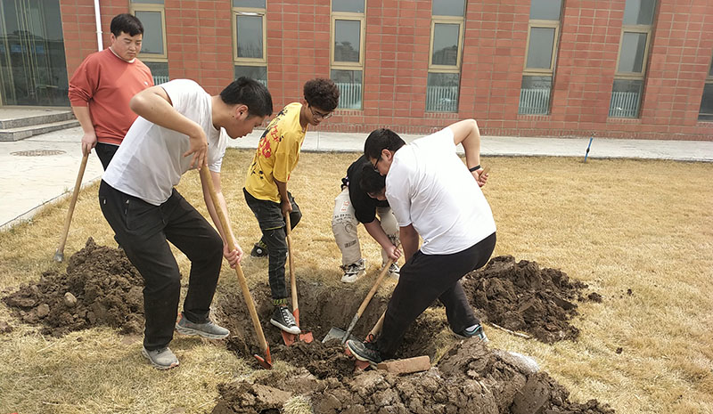 活動中,師生代表熱情高漲、干勁十足,按照專業(yè)人員的植樹指導(dǎo),三人一組,緊密分工協(xié)作、熱情高漲、干勁十足,揮鍬挖窩、扶苗培土、提桶澆水,道道工序細(xì)致認(rèn)真、有條不紊。經(jīng)過師生代表近四小時的忙碌勞動,三百株新栽的樹苗迎風(fēng)挺立,為學(xué)院增添上一抹“新綠”,也將綠色發(fā)展觀念“種”進每位師生心中。